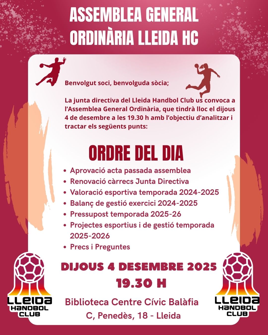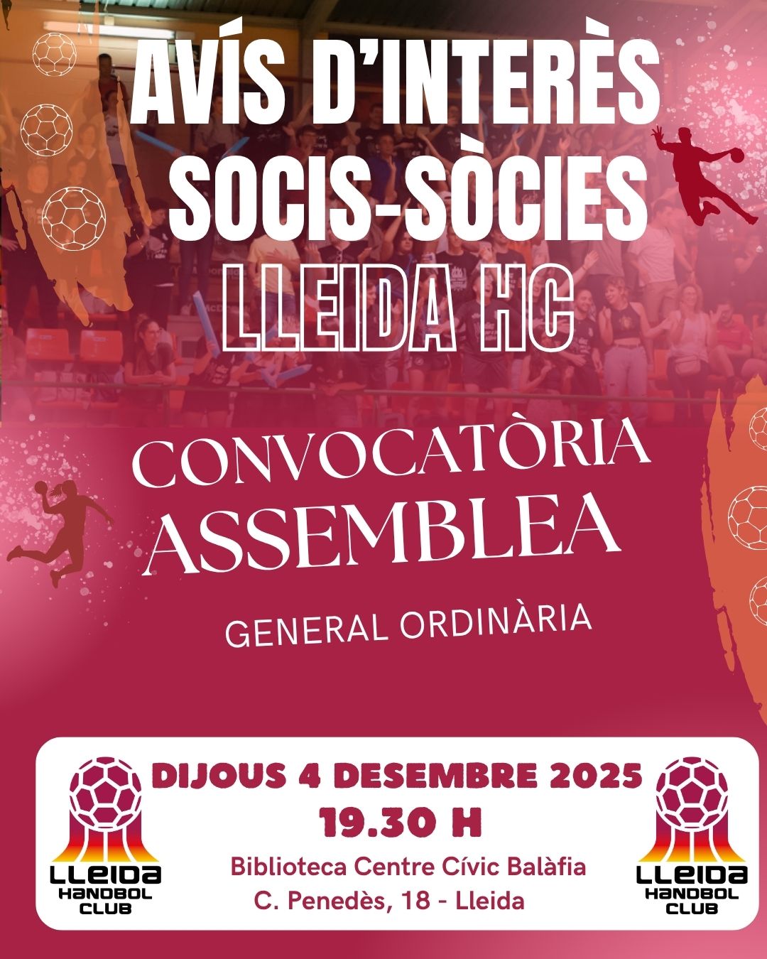 El Lleida Handbol Club convoca als seus associats i associades a la seva Assemblea General Ordinària anual
